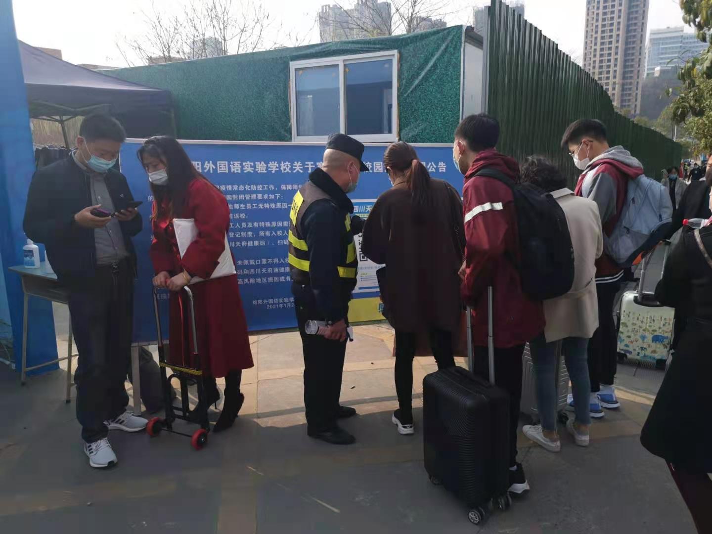 2021年2月28日,我公司服务的绵阳市外国语实验学校、绵阳中学实验学校迎来学生返校。为此,我公司运管部提前部署,绵外、绵中分队积极行动,为两校顺利开学做好安全保障工作。在学生返校过程中,我公司保安员根据学校规定和要求,做好了学校门口附近交通秩序维护工作以及入校学生测温、物品表面消毒等工作,同时积极帮助学生转运行李物品,得到了学校领导和家长的好评。
