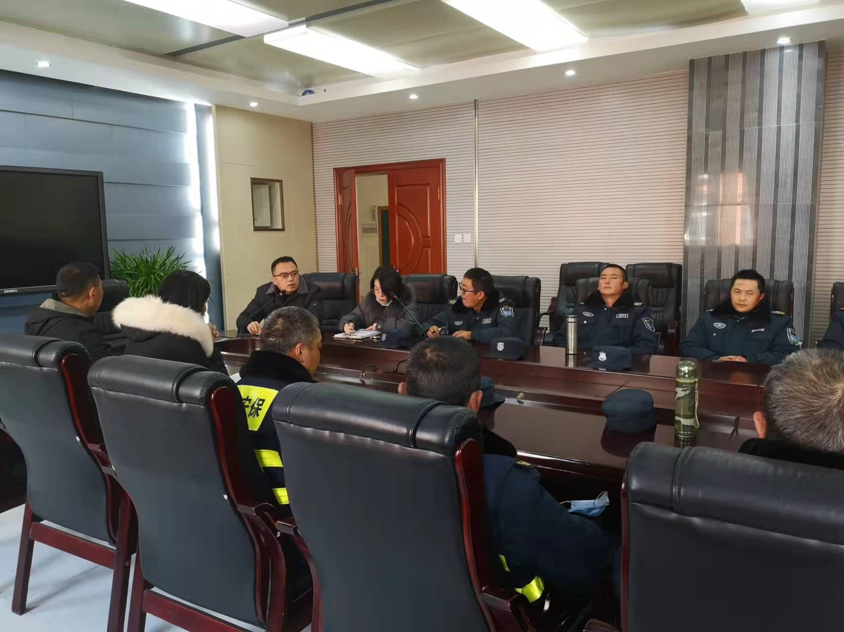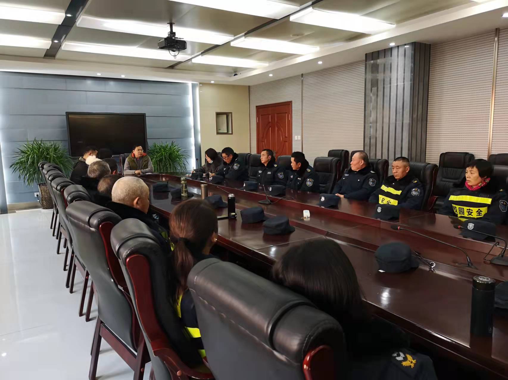 会上,达主任针对保安岗位排布、保安人员日常履职、保安技能培训及保安装备管理等均提出了具体的要求,为安保服务工作质量的进一步改进和提升指明了努力的方向。杨校长对我公司近期的安保工作给予了充分肯定,并针对服务态度等提出了几点建议。两位领导均勉励大家做好保安工作,因为安保工作不仅体现学校的形象,也体现我公司的形象。