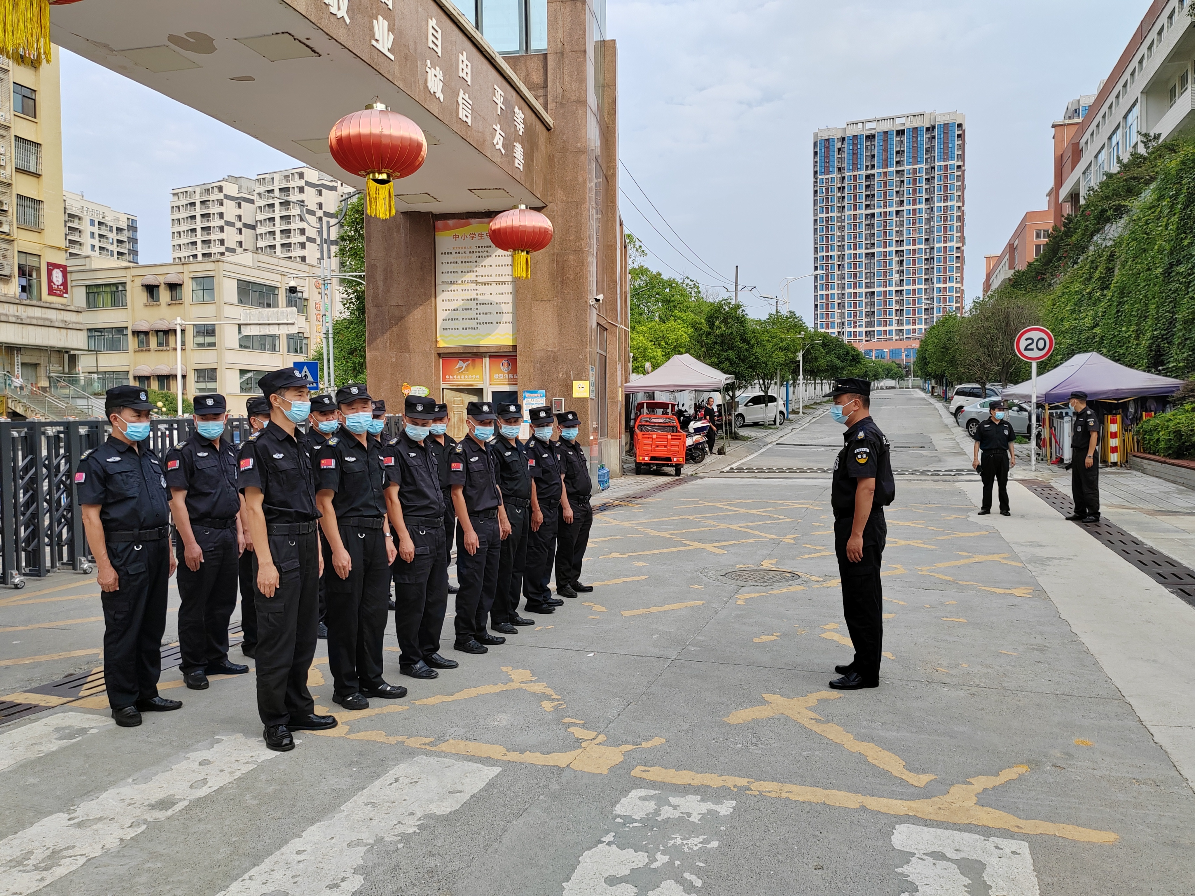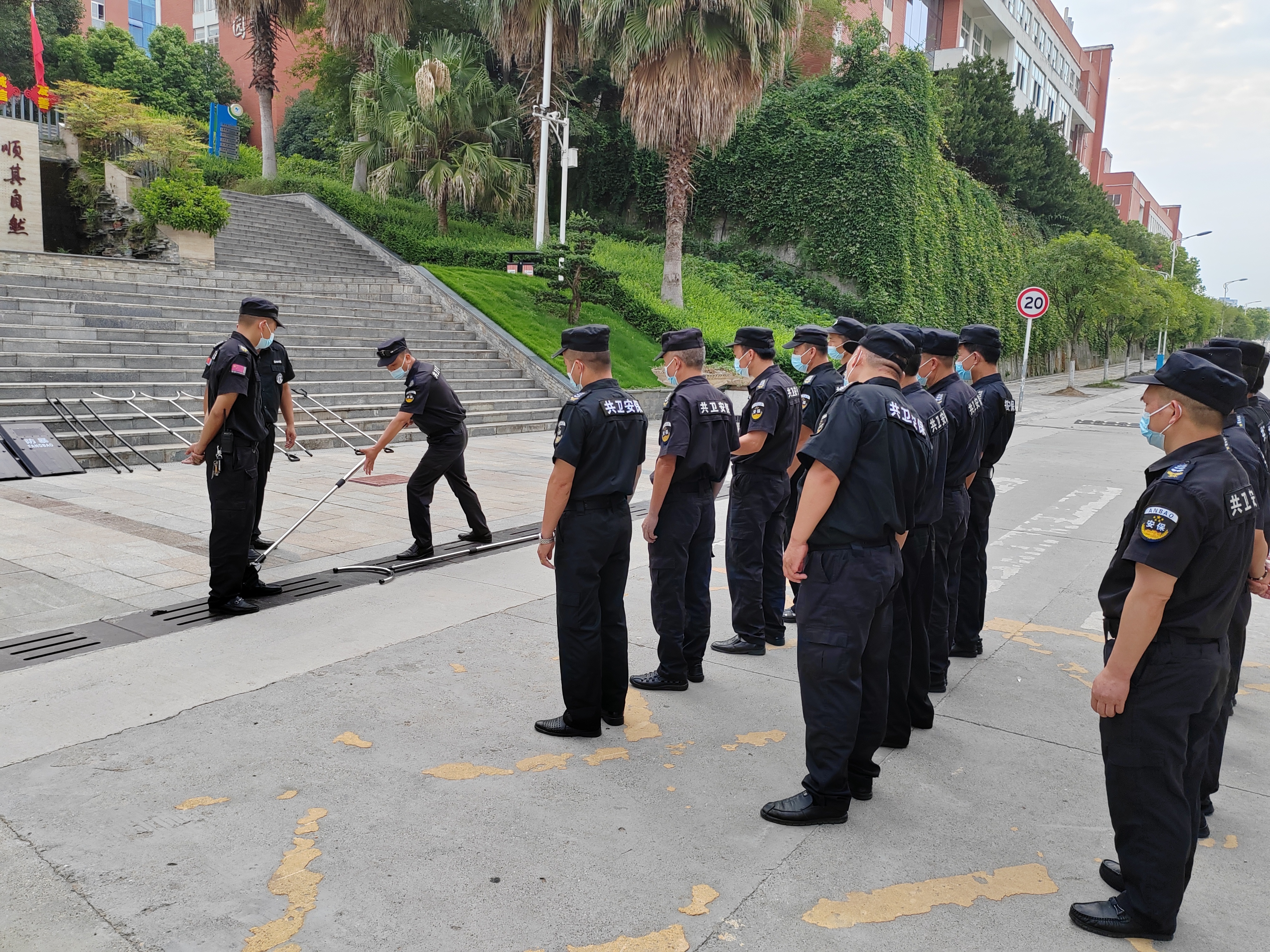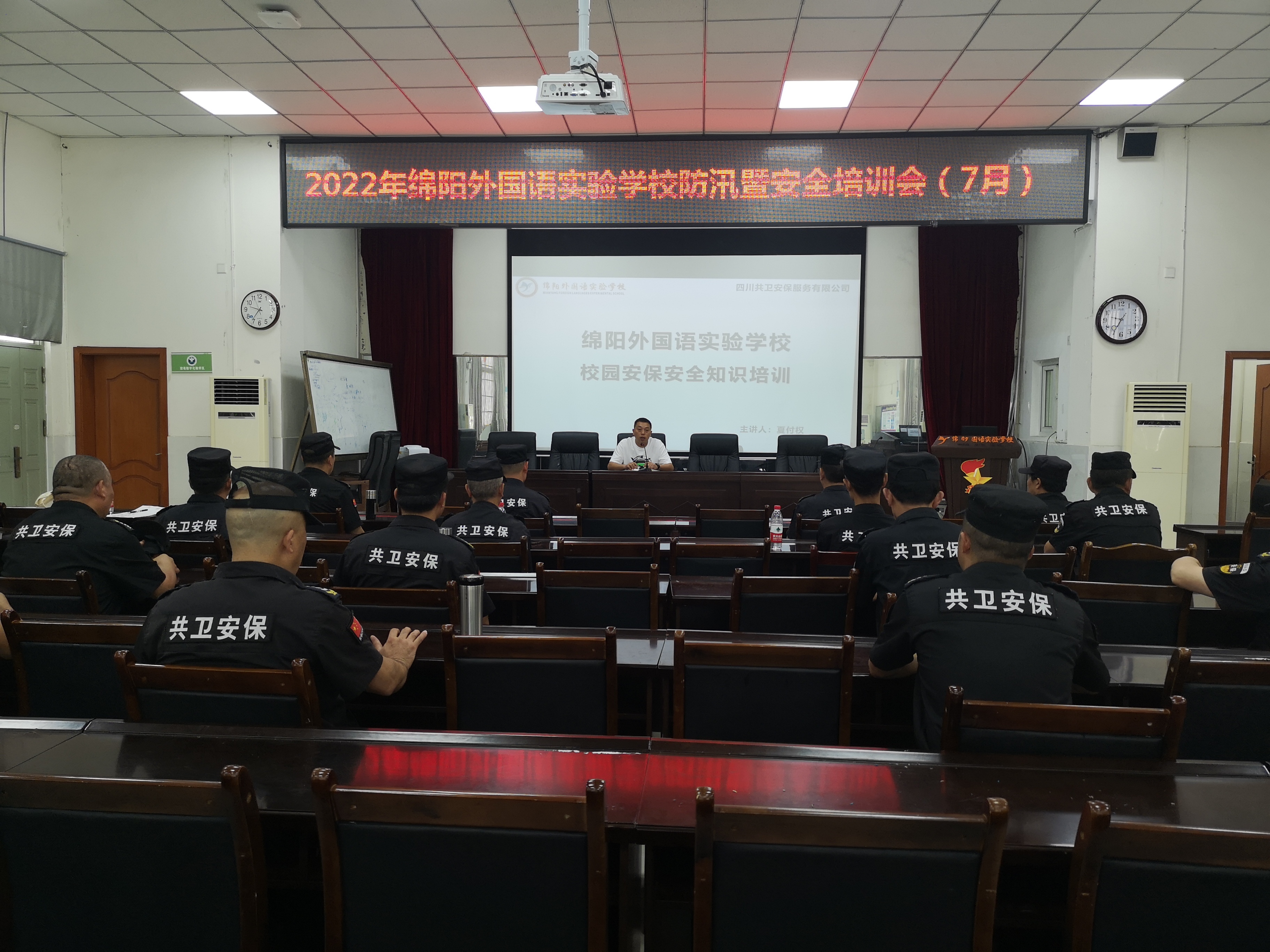 7月25日,公司校园保安暑期培训第二批次参训人员,在绵阳外国语实验学校举行。公司驻绵阳外国语实验学校和驻绵阳中学实验学校的保安队员参加了培训。